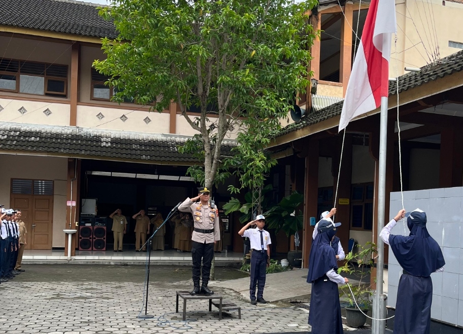 JST-NEWS.COM |Muntilan, – Dalam upaya membangun kesadaran akan pentingnya keamanan dan ketertiban masyarakat (Kamtibmas), Kapolsek Muntilan, AKP Abdul Muthohir, tampil sebagai Pembina Upacara Bendera di SMPN 2 Muntilan, Senin pagi. Kegiatan diikuti oleh 559 siswa, kepala sekolah, guru, dan staf dengan penuh khidmat.