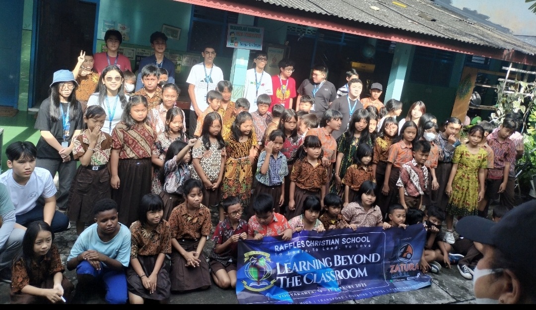 Rombongan Raffles Christian School Jakarta tiba di wilayah Daerah Istimewa Yogyakarta dengan agenda misi sosial di empat sekolahan, salah satu berada di jantung kota Yogyakarta yakni TK BOPKRI Jatimulyo dan SD BOPKRI Karangwaru yang berada di Jl. Jatimulyo TR.1/666 Yogyakarta hari ini Rabu, 15/01/2025.