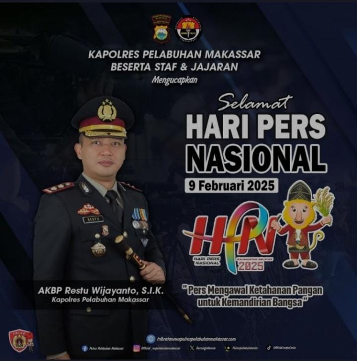 Dalam momentum Hari Pers Nasional (HPN) 2025, Kapolres Pelabuhan Makassar, AKBP Restu Wijayanto, menyampaikan apresiasi setinggi-tingginya kepada insan pers atas dedikasi mereka dalam menyajikan informasi yang akurat dan mendidik masyarakat.