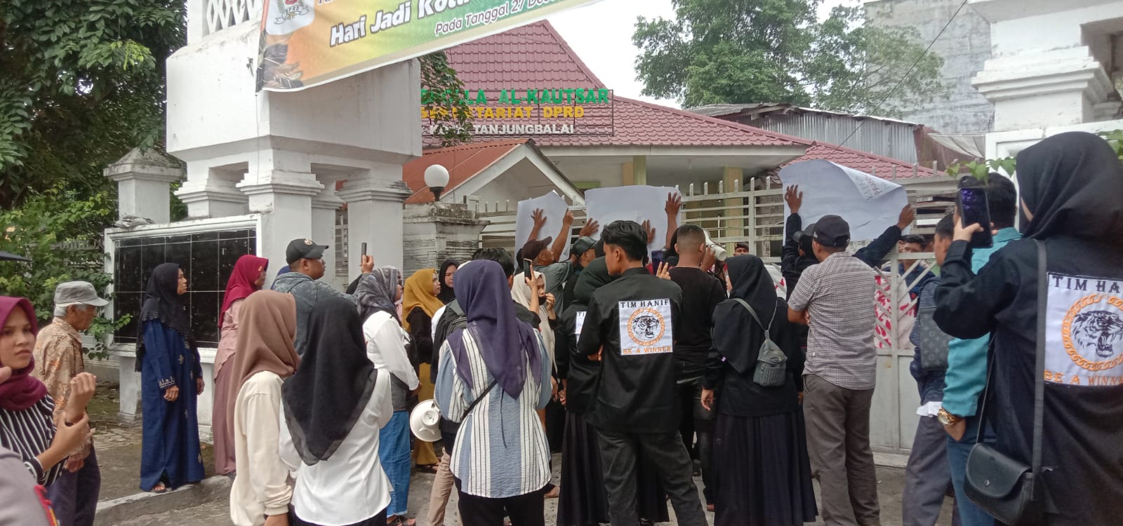 Tim Hanif bersama keluarga korban vonis difteri menggelar aksi unjuk rasa menggeradak kantor Dinas Kesehatan (Dinkes) jalan Gereja Kota Tanjung Balai, Senin (17/2/2025) sekitar pukul 10 WIB yang viral dalam sebulan terakhir ini terkait di duga ulah dokter vonis difteri pasien melalui google dengan membawa spanduk yang bertuliskan diantaranya “Bekukan izin praktek dr. J Sp.A karena diduga telah memvonis pasien hanya bermodalkan senter dan melihat google” dan tulisan lainnya.