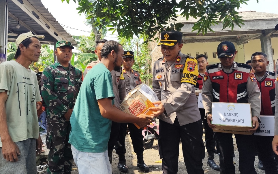 Wakapolres Demak, Kompol Satya Adi Nugraha, mewakili Kapolres Demak, AKBP Ari Cahya Nugraha, beserta anggota Polres Demak, mengunjungi dan memberikan bantuan kepada Basiroh (39), korban kebakaran pada Jum’at (21/2/2025).