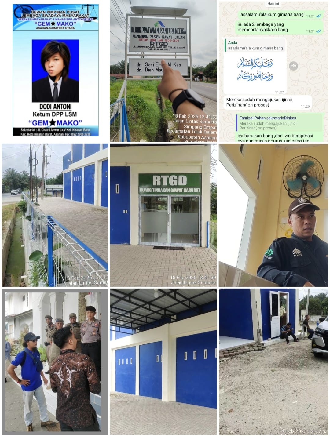 Ketum DPP GEMMAKO dan PERMASI Asahan Usut Dugaan Klinik PRATAMA NUSANTARA MEDIKA Tidak Berizin Di Dusun 4 Desa Pulau Maria