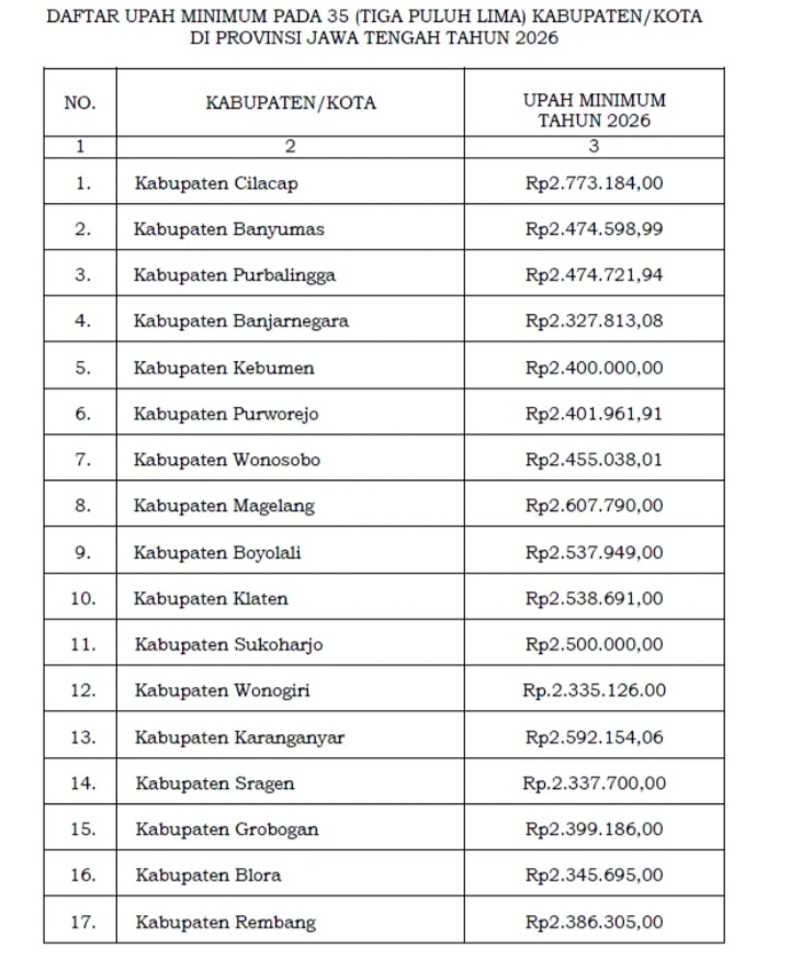Jawa Tengah – Peduli Kebutuhan Standar Transparan UMP (UMK) Harus Setara 4 koma juta