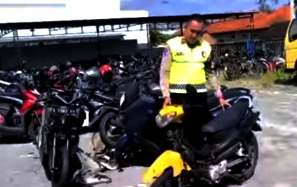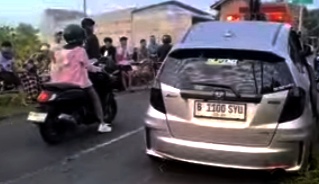 Peristiwa melibatkan sebuah mobil Honda Jazz warna silver dengan motor Yamaha Jupiter berwarna kuning.